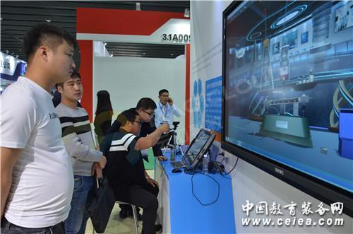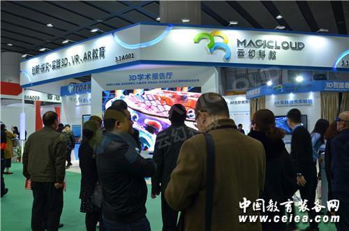 除了AR實(shí)踐探究實(shí)驗(yàn)室外,云幻科教還展出了3D學(xué)術(shù)報(bào)告廳解決方案、3D智能教室解決方案、3D地理實(shí)驗(yàn)室解決方案、3D/VR校園安全教育解決方案、VR虛擬學(xué)科實(shí)驗(yàn)室解決方案,3D教學(xué)產(chǎn)品生動(dòng)有趣,引來(lái)眾多觀眾前來(lái)參觀體驗(yàn)。