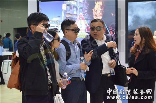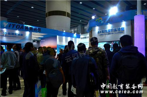 3D/VR創(chuàng)新教育方案?jìng)涫軞g迎,展位現(xiàn)場(chǎng)參觀人員摩肩接踵