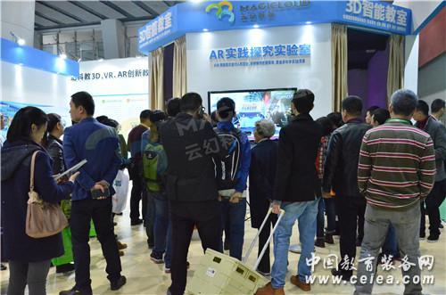 云幻科教3D創新實驗室教學系統入選中國教育裝備行業協會2018年度推薦產品,同時也是其中唯一一個3D技術融合教學的產品,這既是對云幻科教產品的認可,也是對云幻科教3D教育產品研發工作的認可。云幻科教秉承學思結合,知行統一的教育理念,不斷的進行3D教學資源研發,2017年12月,在73屆中國教育裝備展上,云幻科教推出AR實踐探究實驗室解決方案,綜合應用AI和AR技術,搭配AR探究實驗資源庫,按照國家課程標準實驗要求,將中學難懂的抽象的復雜的實驗運用3D建模及AR技術營造虛實合一的實驗場景。老師無需佩戴任何體感設備即可進行手勢操作,通過手勢可以實現抓取、移動、添加、減少、旋轉、拆除、組合等動作,從而進行探究實驗操作。AR實踐探究實驗室一經展出,參觀的人員絡繹不絕,非常認可云幻科教AR產品。