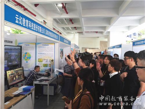 在未來教育展現場,云幻科教AR實驗探究實驗室吸引了眾多參觀者的目光,展位前面參觀者比肩繼踵,創新的教育形式獲得一致好評,參觀體驗者紛紛拍照錄像。