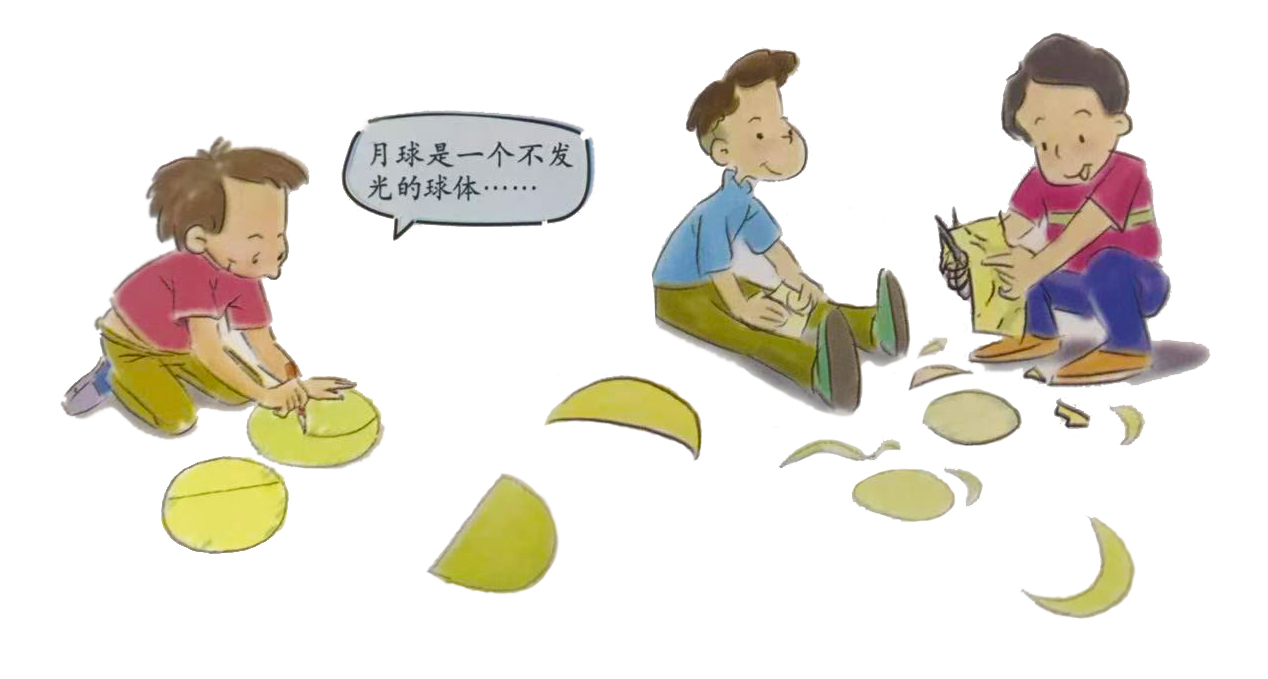 教師給每位同學(xué)幾張相同大小的紙片,讓其畫月相。