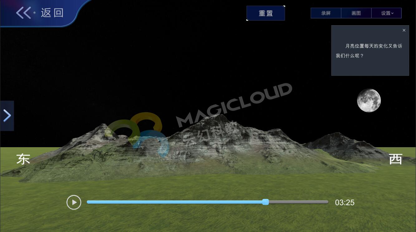 在教學(xué)過程中,不僅僅是要學(xué)生學(xué)得月相變化的知識內(nèi)容,更是幫助學(xué)生完成科學(xué)概念的建構(gòu),培養(yǎng)學(xué)生良好的科學(xué)思維和科學(xué)態(tài)度。云幻科教AR仿真實驗平臺從課本教材出發(fā),提供專業(yè)、全面的教學(xué)內(nèi)容,引導(dǎo)學(xué)生對物質(zhì)世界有更深刻的認識,同時對教學(xué)內(nèi)容進行擴充,將科學(xué)知識與生活場景關(guān)聯(lián),讓學(xué)生能夠用所學(xué)的知識解釋生活中的有關(guān)現(xiàn)象、解決有關(guān)實際的問題,引導(dǎo)學(xué)生在已知內(nèi)容基礎(chǔ)上進行再創(chuàng)新與再創(chuàng)造。