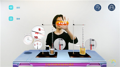 按照國家課程標準實驗要求,將中學(xué)物理難懂的抽象的復(fù)雜的實驗運用3D建模及AR技術(shù)營造虛實合一的實驗場景。老師無需佩戴任何體感設(shè)備即可進行手勢操作,通過手勢可以實現(xiàn)抓取、移動、添加、減少、旋轉(zhuǎn)、拆除、組合等動作,從而進行探究實驗操作。