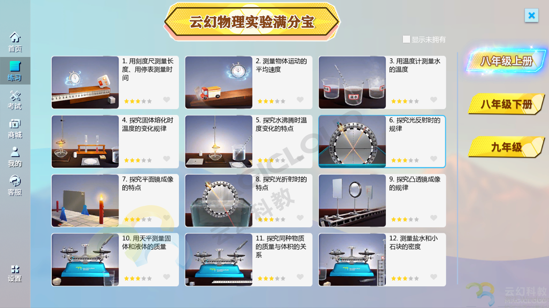 中考實驗滿分寶是利用3D/AR虛擬現(xiàn)實技術(shù),針對初中物理、化學(xué)中考(初中學(xué)業(yè)水平考試)實驗考試而打造的一款快速掌握考點內(nèi)容的系統(tǒng)工具。