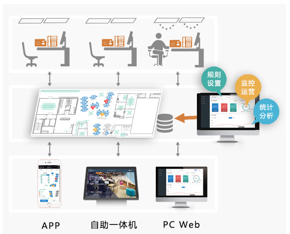 n 實時地圖與導航技術(shù),通過管理平臺中辦公區(qū)內(nèi)自動導覽技術(shù),自動引導您前往預(yù)定或指定的辦公區(qū)域。