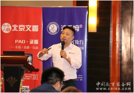 緊接著由北京文香福建區域經理王智群針對福建省的具體情況,為各位嘉賓講解文香教育錄播解決方案-精品錄播、云錄播、互動錄播及微課方案,讓文香錄播在福建更好的落地生根。
