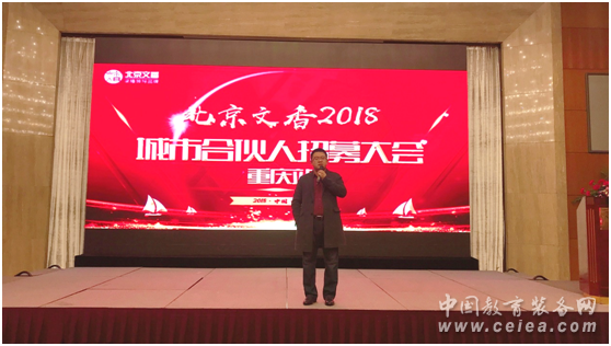 然后是重慶市教學儀器設備行業協會會長譚中長致辭,他表示了對北京文香的肯定并希望今后文香能夠一直做出優異的教育設備,更好的助力教育信息化發展。