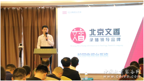 北京文香校園電視臺事業(yè)部技術(shù)負責(zé)人巨冬冬與各位嘉賓共同探討校園電視臺對國內(nèi)教育信息化建設(shè)的影響及文香在這方面的成果,對產(chǎn)品功能和應(yīng)用領(lǐng)域進行了著重講解,特別提到校園電視臺的整體解決方案,并與到場嘉賓進行互動交流。