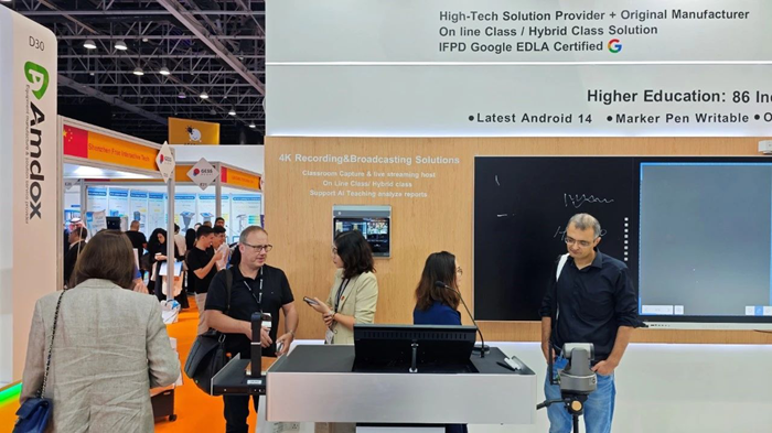 在展會上,wentech還展示了新推出的AI錄播系列解決方案,這些解決方案包括4K移動錄播解決方案、4K常態化錄播解決方案,以及4K移動實訓錄播解決方案等。來自迪拜ICT行業大型公司的Nova Mohammed Wajid說:“這些設備將為中東的學校帶來新的體驗,也將為我們帶來新的商機,未來將在各方面進行深度合作”。該系列解決方案為中東教育機構和個人用戶提供更多樣化的錄播解決方案,滿足不同場景下的教學需求,不僅適用于各類學校的教學需求,還可用于企業培訓、遠程教育等多個領域。