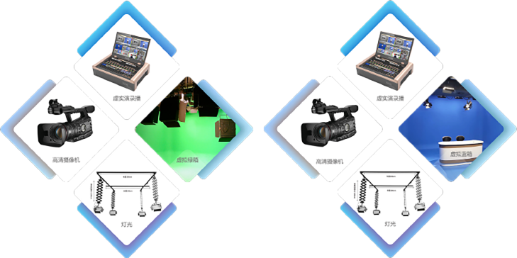 本方案由文香一體化虛實演播主機、音視頻采集設備、虛擬藍箱\綠箱、燈光系統(tǒng)等產(chǎn)品組成。