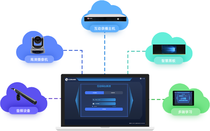 本方案由智慧黑板、互動錄播主機、高清攝像機、專業(yè)音頻設(shè)備、視頻互動應(yīng)用云平臺等產(chǎn)品組成。