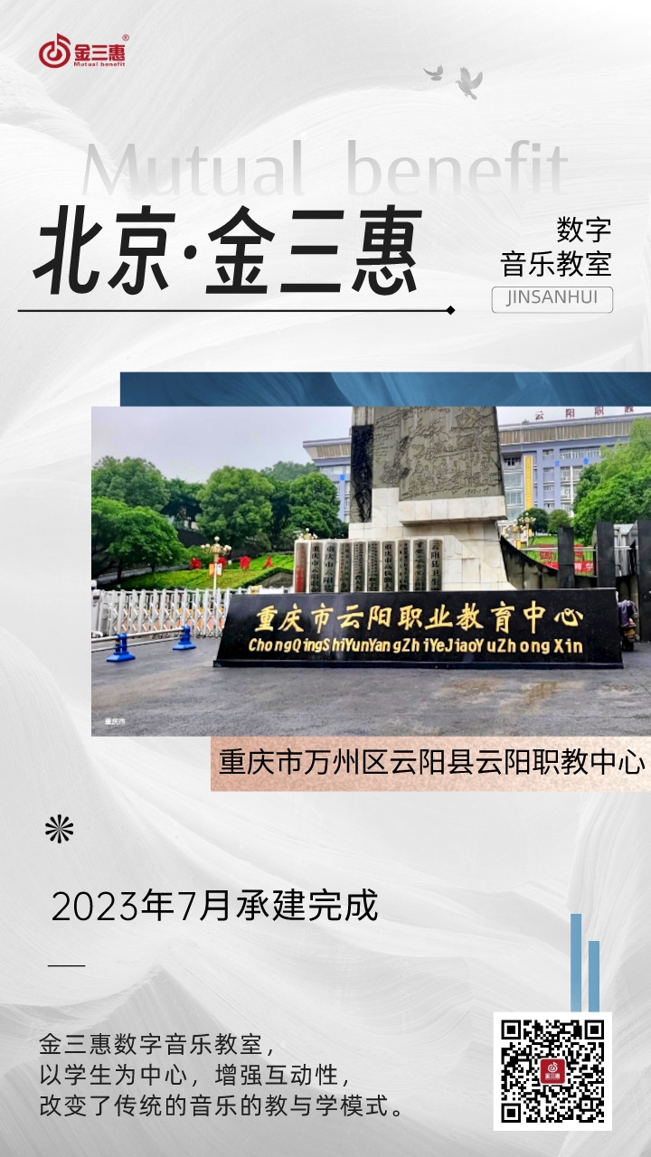 2023年7月,金三惠數字音樂教室為重慶市萬州區云陽縣云陽職教中心提供、安裝、培訓的數字電鋼琴教室正式開始使用!