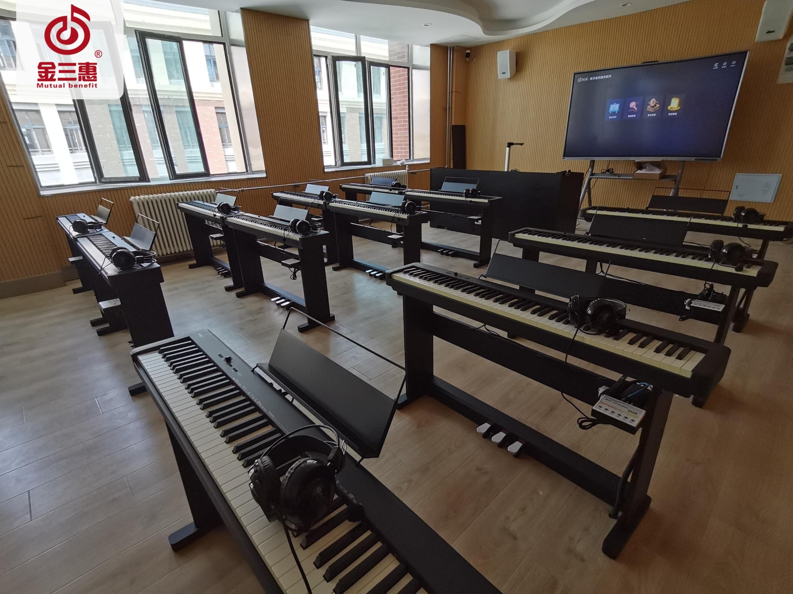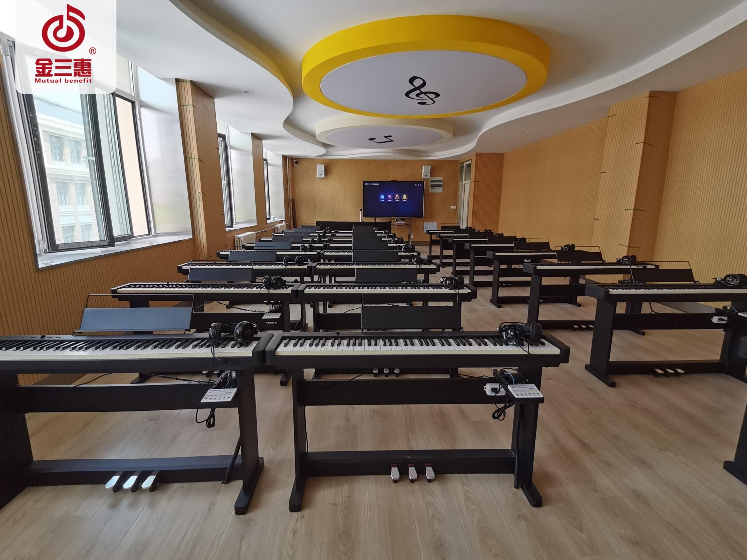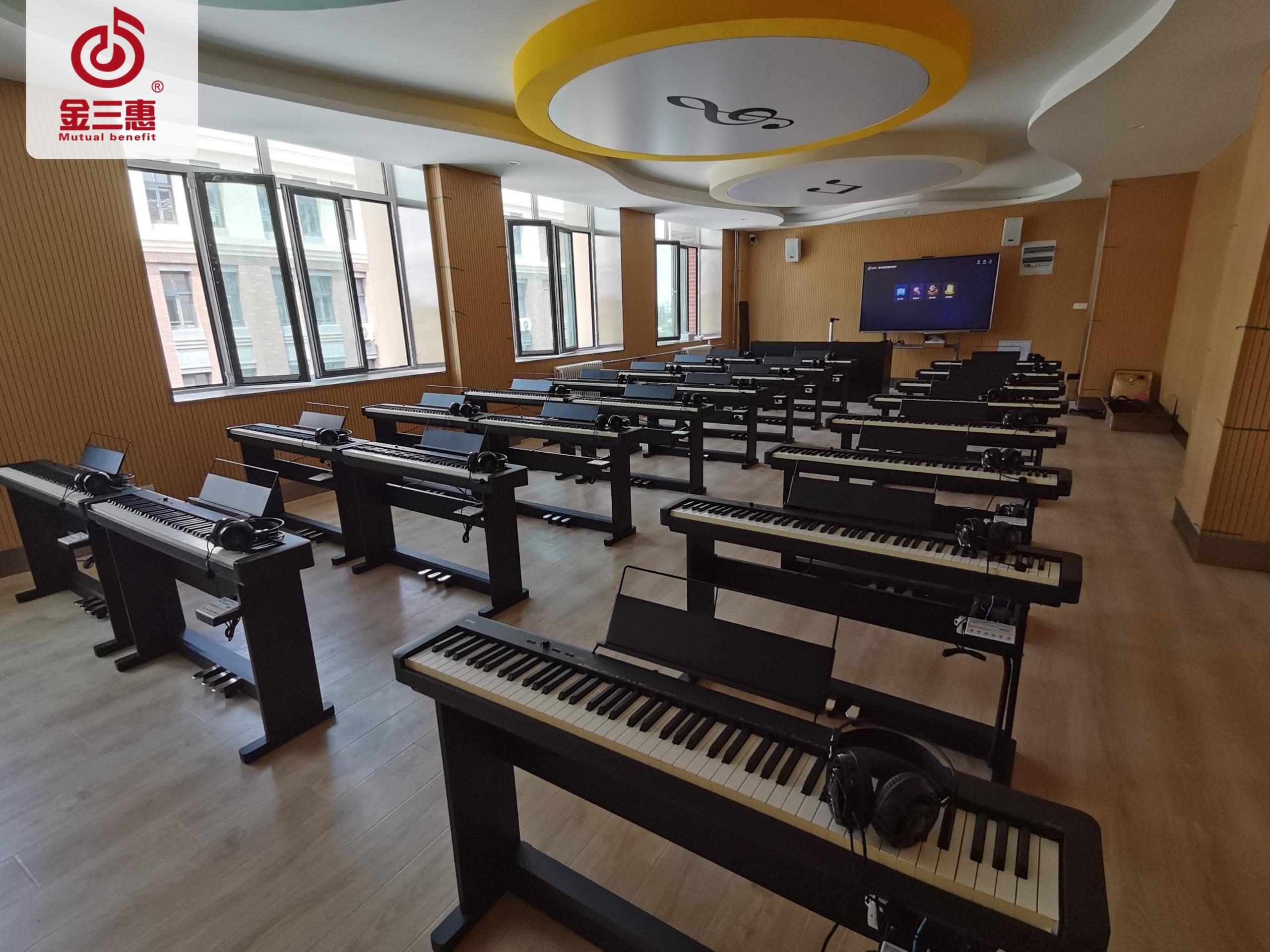 金三惠數字電鋼琴教室,功能豐富、穩定實用、兼容性強�?梢哉w裝配,亦可單獨定制。全面滿足用戶各種需求。是鋼琴教學與實訓的專業教室。支持教師、學生規律的、科學的、恒久的訓練。
