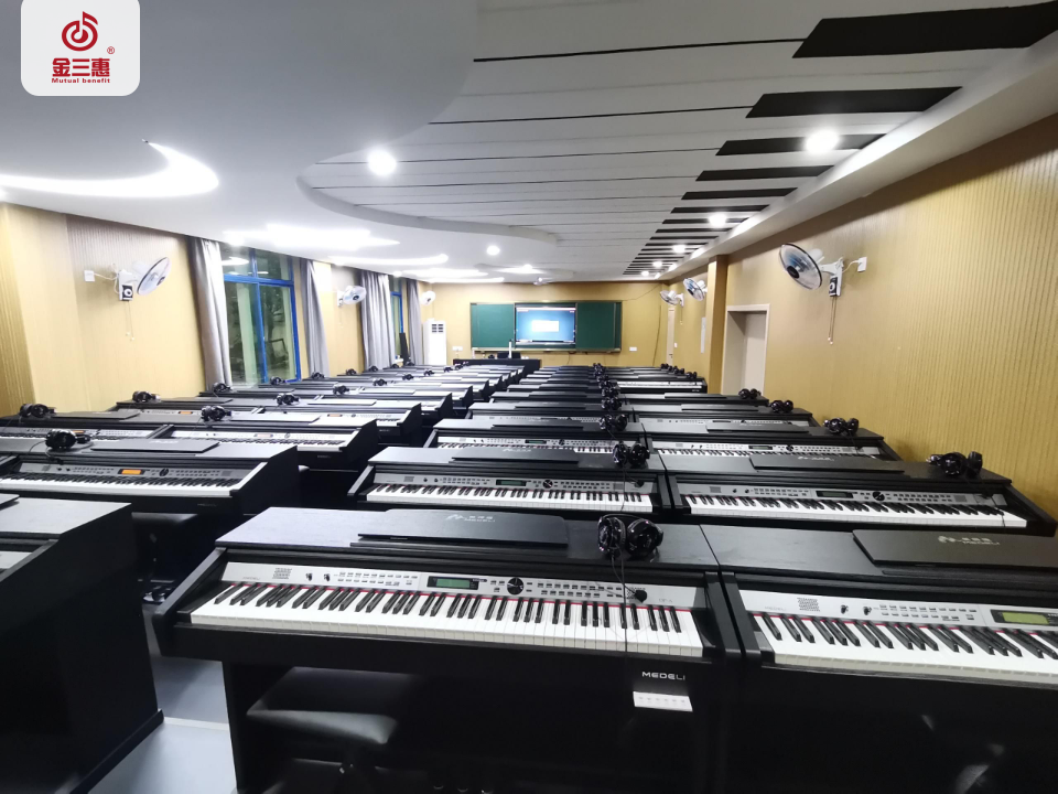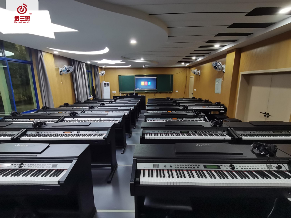 2023年8月,金三惠數字音樂教室走進江西省鷹潭市第九小學,為學生提供了45+1的電鋼琴教室,配備了金三惠電鋼琴教學系統、電鋼琴、數字音樂教學儀等教學教具等。