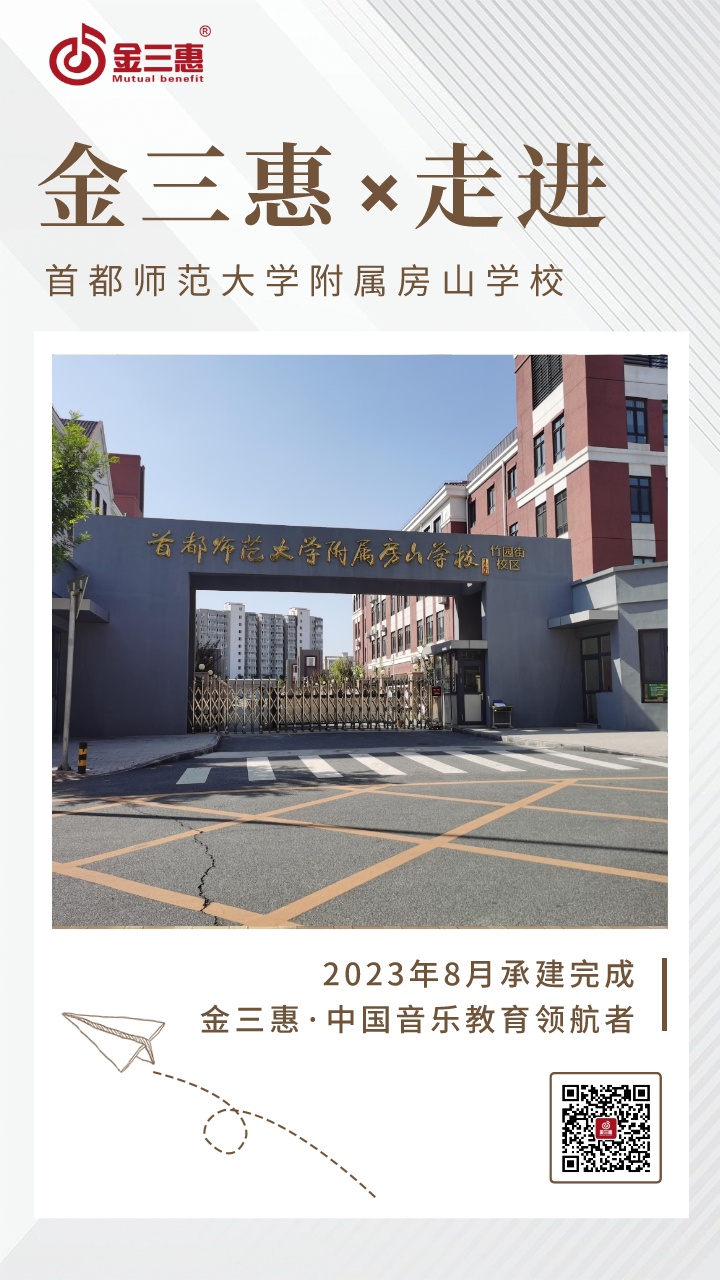 22023年8月,金三惠數字音樂教室走進首都師范大學附屬房山學校,為學生提供了42+1的電鋼琴教室,配備了金三惠電鋼琴教學系統、電鋼琴、數字音樂教學儀等教學教具等。