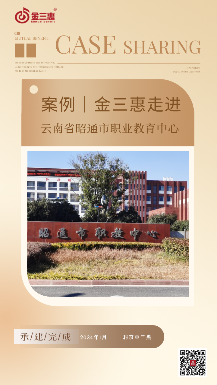 2024年1月,金三惠數字音樂教室走進云南省昭通市職業教育中心,為學校提供了30+1的電鋼琴教室7間,配備了金三惠電鋼琴教學系統、200多臺電鋼琴、數字音樂教學儀等教學教具等。