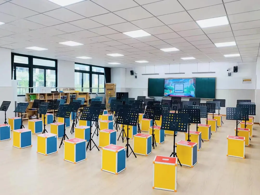 符合國家教育部下發的《小學音樂教學器材配備標準》、《初中音樂教學器材配備標準》、《普通高中音樂教學器材配備標準》關于音樂教室的配置要求,是適用于九年義務學校、中高校、中高職的通用教室。