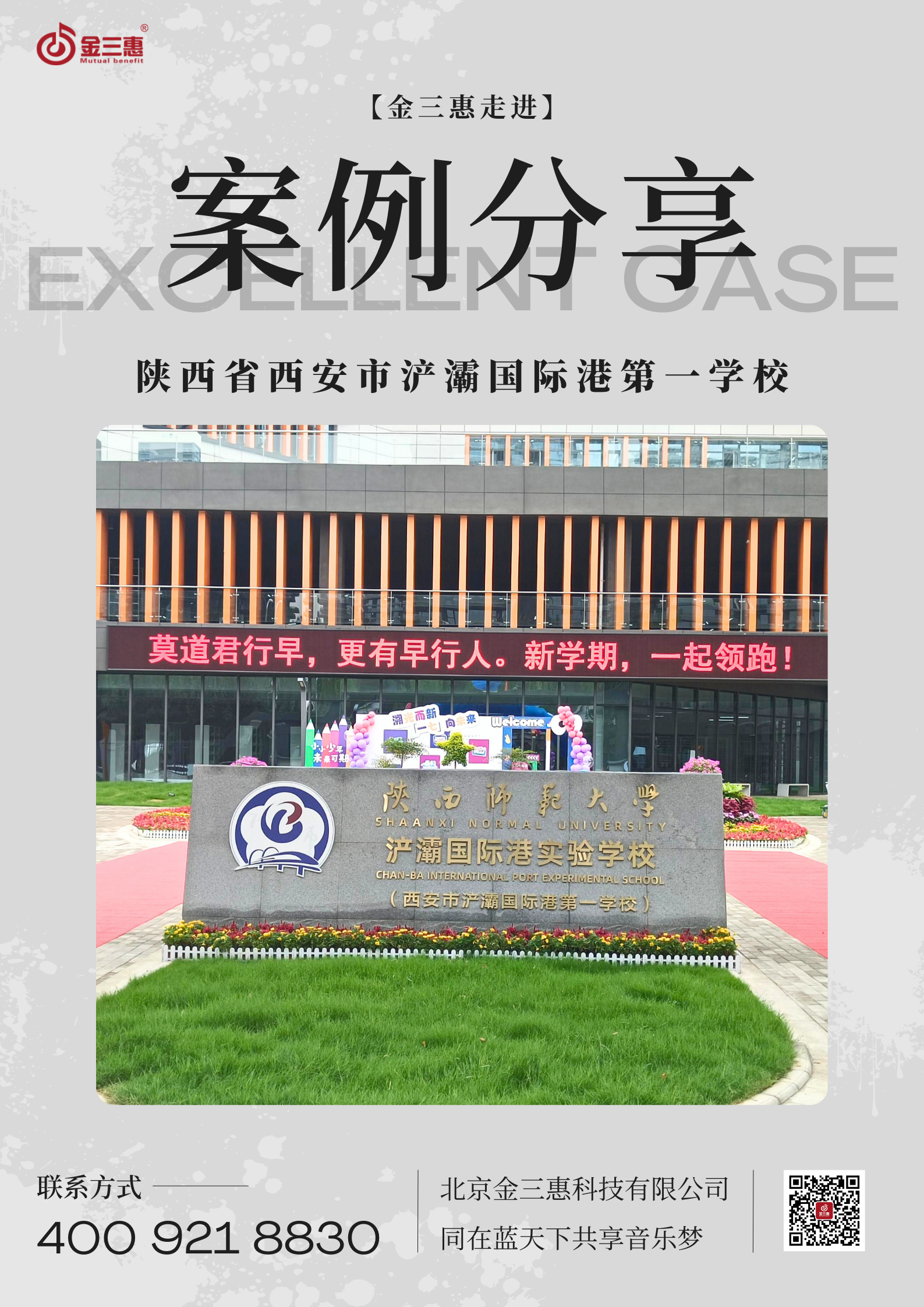 2025年8月,金三惠音樂教室走進陜西省西安市浐灞國際港第一學校,為其提供了26+1的智慧音樂素養教室,配備了金三惠數字音樂教學系統、電鋼琴、數字音樂教學儀等。