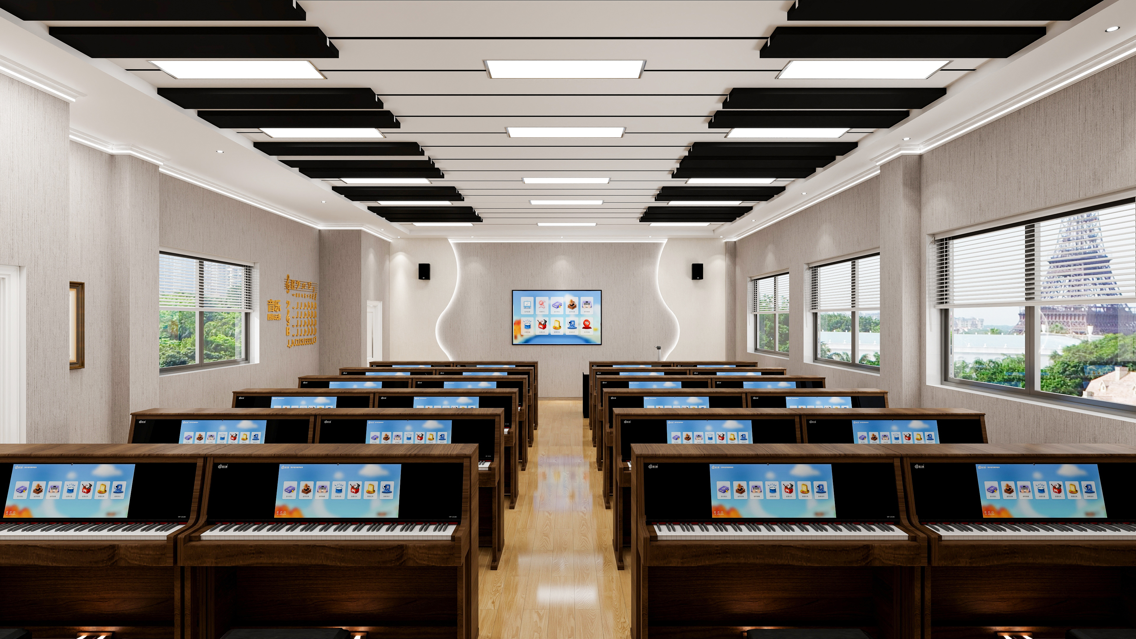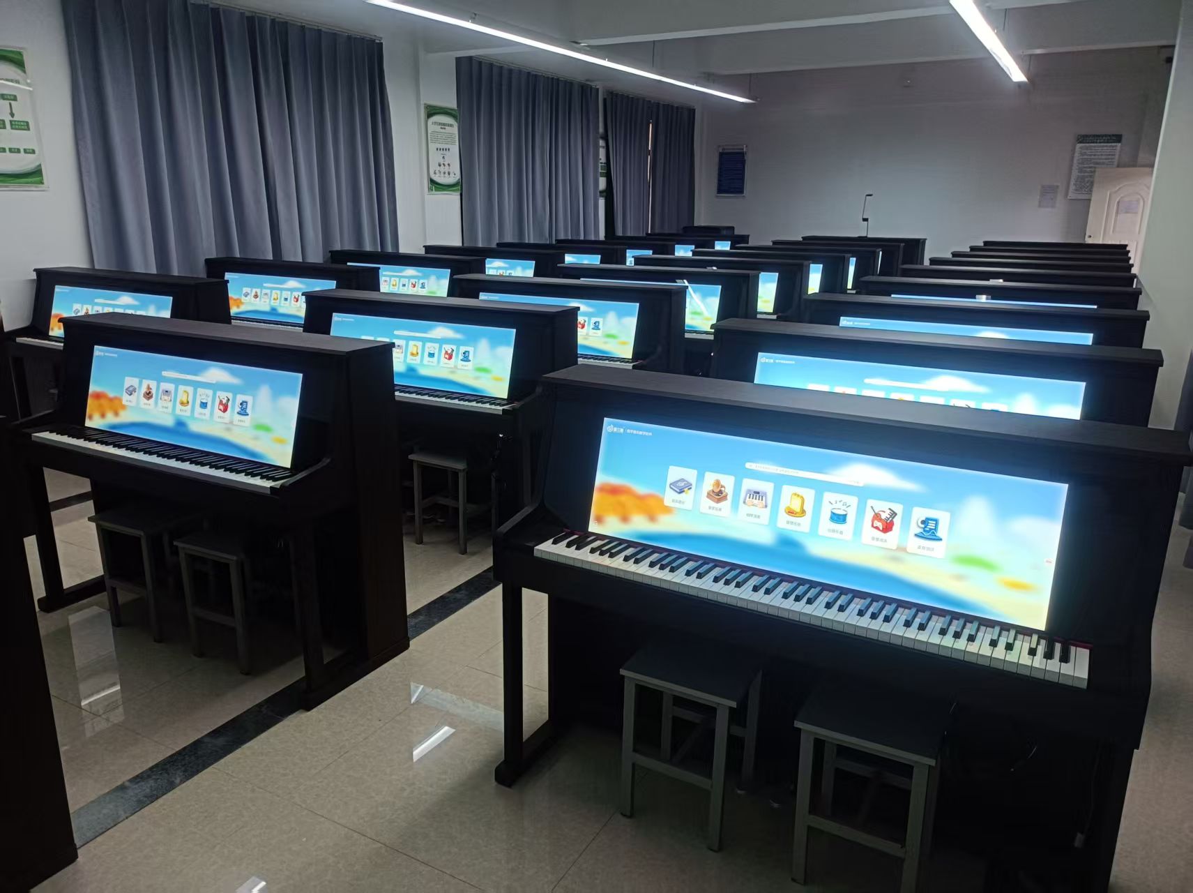 • 以全面提升學生音樂素養為目標,以智慧電鋼琴為載體搭載數字音樂教學系統,實現學生審美感知、藝術表現、創意實踐、文化理解的全面發展,將核心素養的培養貫穿始終,實現教、學、練、考綜合一體化的智慧音樂素養教室。