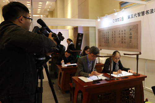 2018年12月4-5日,第十三屆全球孔子學院大會在成都舉行,來自150多個國家和地區的大學校長、孔子學院代表近1500人參加大會。華文眾合攜自主研發的第五代智慧書法教室亮相孔子學院大會,融合AI技術、智能硬件、物聯網等先進技術的新產品吸引眾多參會者體驗、了解,共話漢語海外教學和文化交流,引來中央電視臺英語頻道、四川電視臺科教頻道、四川廣播電視臺等媒體采訪報道。