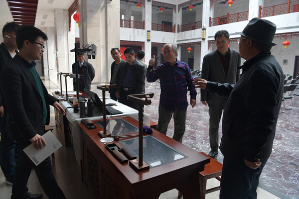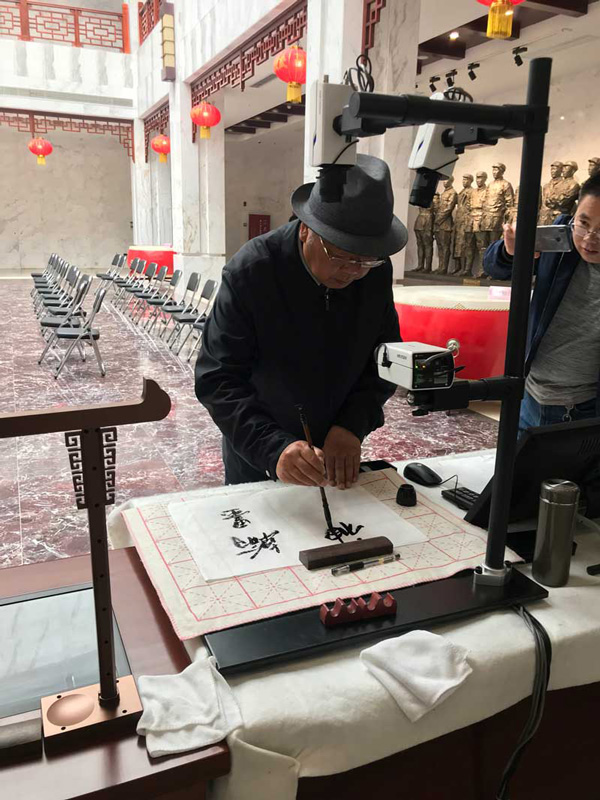 華文眾合應(yīng)邀攜第五代智慧書法教室前往參展。中國美術(shù)家協(xié)會(huì)副主席王書平、菏澤李榮海美術(shù)館名譽(yù)館長李榮海等領(lǐng)導(dǎo)蒞臨華文眾合智慧書法教室展位,對其功能、特性經(jīng)過體驗(yàn)、了解后,紛紛表示極大的肯定和贊揚(yáng)。