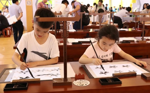 華文眾合作為智慧書法行業(yè)的領軍企業(yè),此次展出的新產品——第五代智慧書法教室吸引了男女老少眾多觀眾駐足展位,親身體驗。
