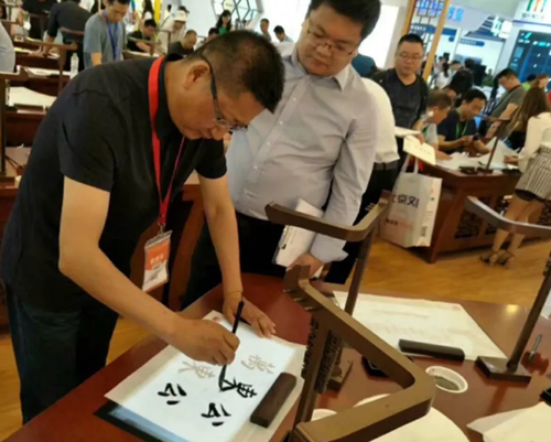 華文眾合此次展出的新產品——第五代智慧書法教室充滿古韻,同時又不失現(xiàn)代科技感,深受廣大觀眾喜愛。