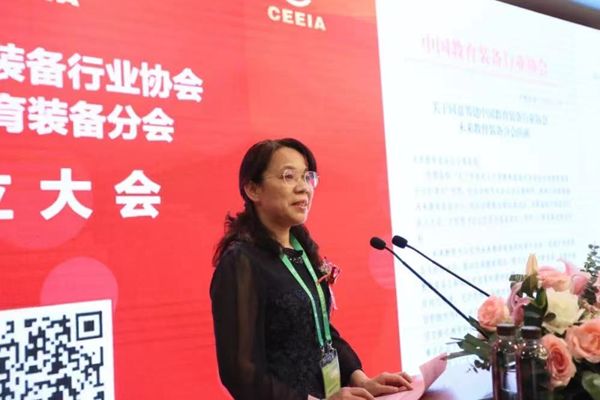圖 | 中國教育裝備行業(yè)協(xié)會副秘書長朱俊英宣讀批復(fù)文件