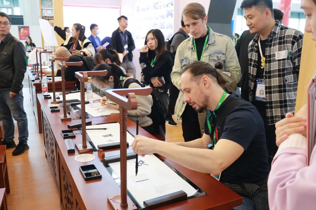 俄羅斯觀眾在華文眾合第8代智慧書法教室寫下“中國夢”