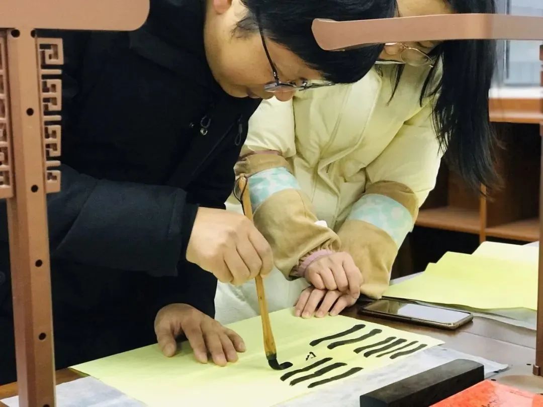 培訓后,教師們紛紛拿起毛筆練習,并使用書法資源庫進行自學。軍馬場學校將古色古香的傳統筆墨和現代科技數字化書寫相結合,賦能青年教師的綜合素養提升。