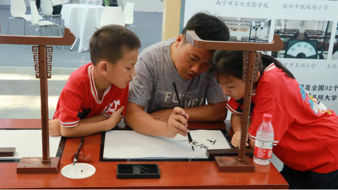 華文眾合智慧書(shū)法教室體驗(yàn)感十足,吸引眾多目光