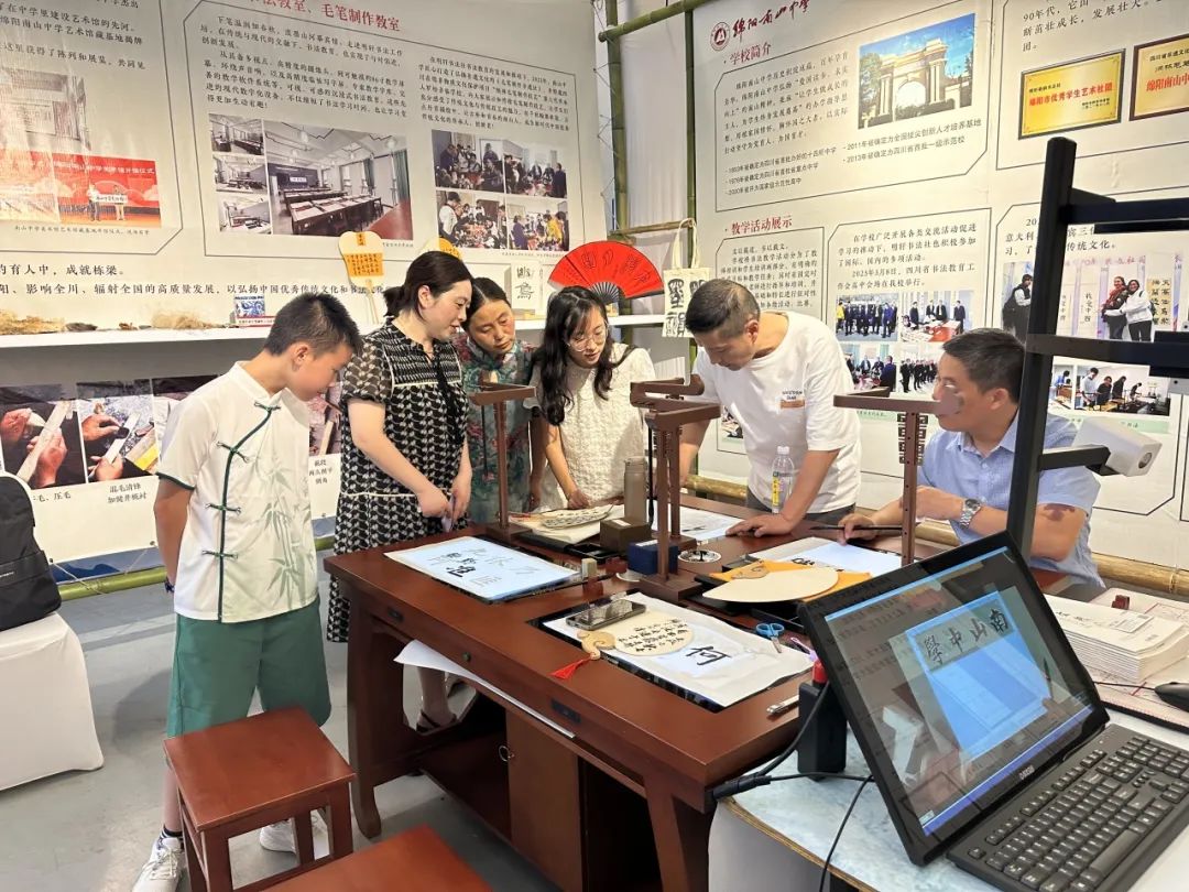 綿陽南山中學將華文眾合智慧書法教室的部分設備展示在現(xiàn)場,以高清臨摹體驗、快速集字創(chuàng)作、交互式的教學模式,為活動現(xiàn)場師生觀眾提供了書法學習新理念、新思路。