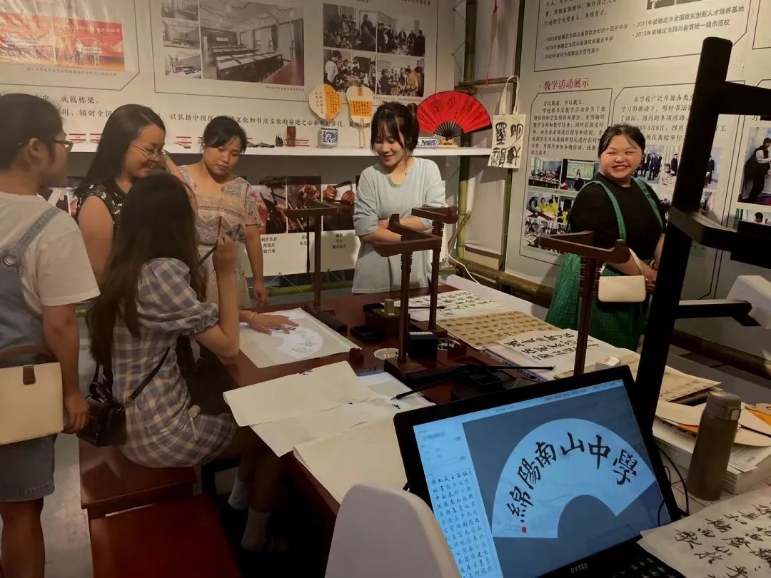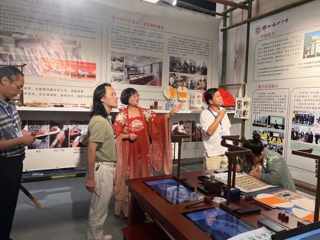 四川省教育科學研究院藝術與體育教育研究所所長馮恩旭一行參觀指導綿陽南山中學搭建的明軒書法坊,體驗華文眾合交互式數(shù)字臨摹臺,感受傳統(tǒng)和科技相融合的翰墨之美。
