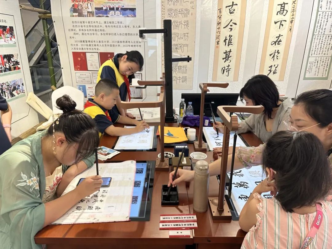傳習工坊展為本屆青少年書畫傳習大會首設,集中展現(xiàn)了四川特色鮮明、風格獨特的書畫傳習校園工坊優(yōu)秀模式,借助智慧書法教學設備,以場景化、交互式的展陳方式,為全省書畫愛好者獻上了一場筆墨的瑰麗盛宴。