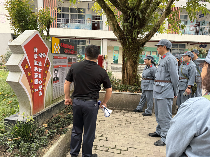 寶興縣靈關中心校的紅色基因,深植于 1935 年那段驚心動魄的革命歷史。在車道海校長的帶領下,志愿者一行首先參觀了校園內的陳云出川史實資料。泛黃的照片、珍貴的文獻,生動再現了陳云同志在地下黨員席懋昭(時任靈關小學校長)護送下,穿越封鎖線、輾轉上�;謴忘h組織的艱險歷程。