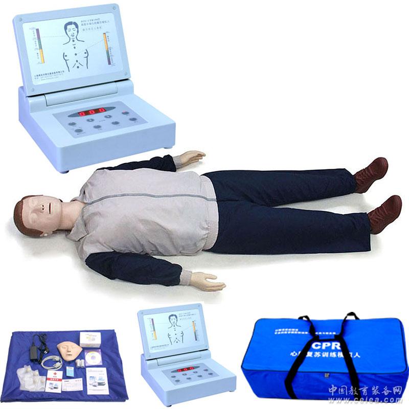 功能特點: ■ 模擬人解剖特征明顯,手感真實,膚色統一,形態逼真,外形美觀。 ■ 模擬生命體征: · 模擬人瞳孔由一只散大與一只正常相對比認識。 · 頸動脈搏動由開關可開啟和關閉。 ■ 可進行人工呼吸和心外按壓。可進行標準氣道開放,氣道指示燈變亮。 ■ 操作方式:CPR訓練操作,可進行按壓和吹氣訓練。 控制器顯示屏功能: ■ 電子監測:電子指示燈顯示監測氣道開放和按壓部位。 ■ 語音提示:訓練中全程中文語音提示,可開啟和關閉語音,調節音量。 ■ 條形碼顯示吹氣量:正確的吹氣量為500~600ml-1000ml: · 吹氣量過少時,條形碼為黃色。 · 吹氣量合適時,條形碼為綠色。 · 吹氣量過大時,條形碼為紅色。 · 吹入的潮氣量過快或超大,造成氣體進入胃部指示燈顯示。 ■ 條形碼顯示按壓深度,正確的按壓深度5-6cm: · 按壓深度過少時,條形碼為黃色。 · 按壓深度合適時,條形碼為綠色。 · 按壓深度過大時,條形碼為紅色。 ■ 可自行設定操作時間,以秒為單位。 ■ 操作頻率:2015標準為至少100次/分,也可自行設定數值。 ■ 電源狀態:采用220V電源,經過穩壓器穩壓后輸出電源12V。(可選加裝鋰電池,適用于無外接電源的情況下直接使用) 材料特點: ■ 面皮膚、頸皮膚、胸皮膚、頭發,采用進口熱塑彈性體混合膠材料,由不銹鋼模具、經注塑機高溫注壓而成,具有解剖標志準確、手感真實、膚色統一、形態逼真、外形美觀、經久耐用、消毒清洗不變形,拆裝更換方便等特點,其材料達到國外同等水平。 標準套配置: ■ 高級復蘇全身人體模型一具; ■ 高級顯示控制器一臺; ■ 高級豪華超厚牛津袋一只; ■ 復蘇操作墊一條; ■ 電源適配器一根; ■ 數據線一根; ■ 屏障面膜(50張/盒)一盒; ■ 可換肺囊裝置四套; ■ 可換面皮一只; ■ 2015國際最新操作指南光盤1盤; ■ 現場急救常用技術使用手冊1本; ■ 使用說明書一本; ■ 保修卡、合格證;