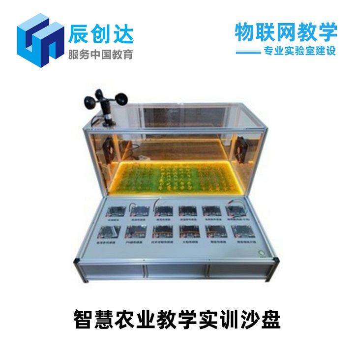 沙盤主體采用鋁合金骨架,長寬高為:800*800*500mm,沙盤一側為智能農業大棚模型,大棚內置風扇節點、燈光節點、農業傳感器以及相關控制器節點,另一側為智能農業實訓區域,實訓區域支持磁吸搭積木的連接方式,表面集成多路物聯網模塊供電底板,所有供電底板由沙盤內部統一供電,無需外接電源,便于學生操作;