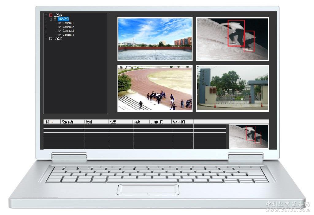 在原有視頻監控接入平安校園預警系統,當異常事件發生時,實時預警。