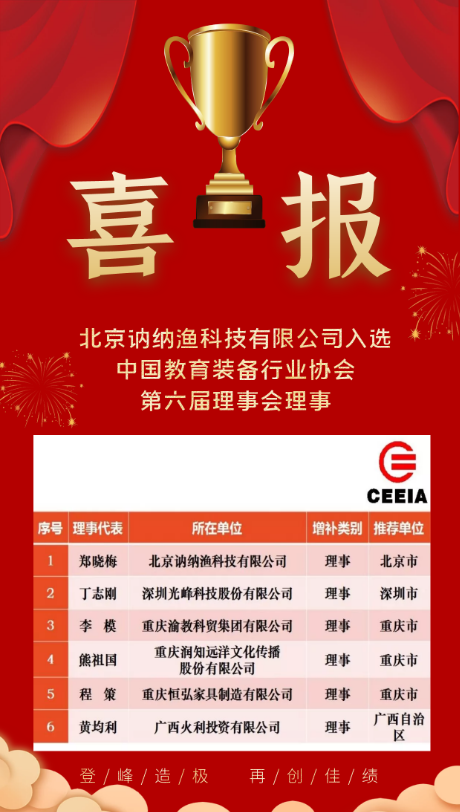 祝賀訥納漁入選中國教育裝備行業協會第六屆理事會理事