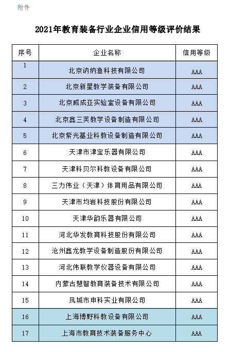 2021年教育裝各行業企業信用等級評價工作經會員企業自愿報名,地方協會預審、推薦,協會確定參評企業名單,第三方信用服務機構技術評分、初評、終審、公示,共有來自全國的86家會員企業獲評2021年教育裝備行業企業信用等級,部分企業多次獲評。