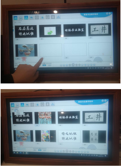 課堂批改講評,點名表揚展示,動靜結合;同步書法課跨越空間共建融融班級的學習氣氛。
