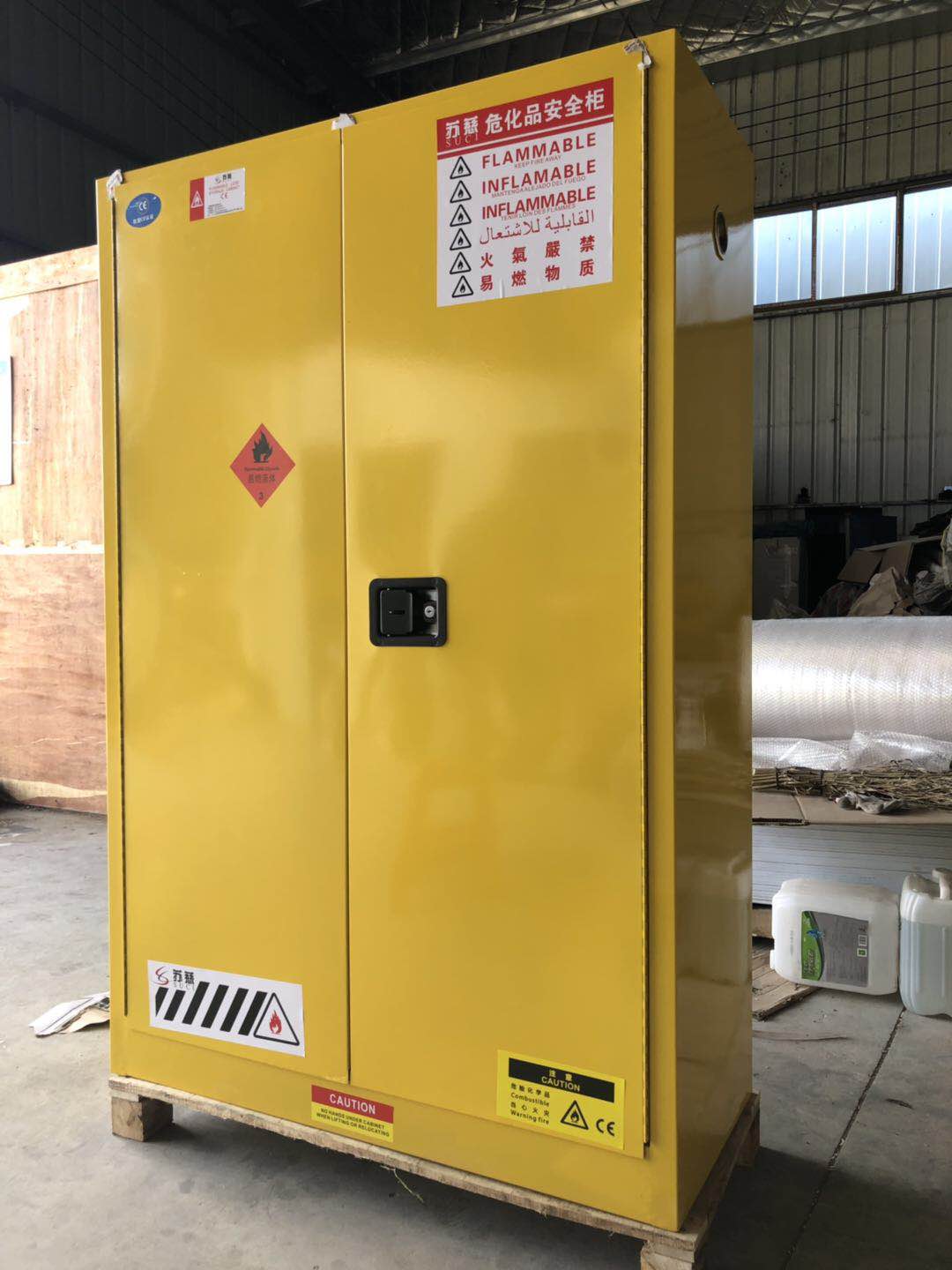 ◆超高性能的蘇慈(SUCI)安全柜達到OSHA29CFR1910.106(美國職業安全健康管理局)標準、符合NFPA CODEE30(美國國家消防協會)第30條的相關標準要求用于規范存儲易燃、易爆、腐蝕性液體及危險化學品; ◆化學品安全柜全系列產品已獲得歐盟CE認證,敬請放心購買; ◆全部雙層鋼板構造,二層鋼板之間相隔有38mm絕緣層; ◆雙層優質鋼板經過點焊接,使用壽命延長,防火性能更好; ◆優質三點聯動式門鎖和鋅合金鎖舍,輕松自如啟閉180度的柜門配有雙鑰匙; ◆可選配一把掛鎖,實現雙人雙鎖的安全管理要求; ◆5cm高的防漏液槽使意外流出的液體不外溢; ◆專業規范的警示標簽顯而易見; ◆裝有防閉火裝置的雙透氣孔分別位于柜身左下角、右上角; ◆獨有的超強承重鍍鋅層板可在每11cm層檔上下自由調節; ◆柜子內外都噴涂環氧樹脂,耐腐蝕性更佳; ◆嚴格按照OSHA規范,柜身設有靜電接地傳導接口,方便連接接地導線,將靜電荷導入大地,降低靜電火花造成火災風險; ◆可根據不同客戶的具體要求進行非標定制,滿足您的實際需求; ◆柜體頂部、后背設計成氣體壓力釋放處,緩解發生爆炸時壓力向四周噴濺; ◆采用手動開門(自閉門)設計,為確保安全柜防火性能,雙開門的門縫不大于3Mm,且門縫上下大小一致; ◆三點式子彈頭式鋅合金鎖舌,輕松閉合柜門; |