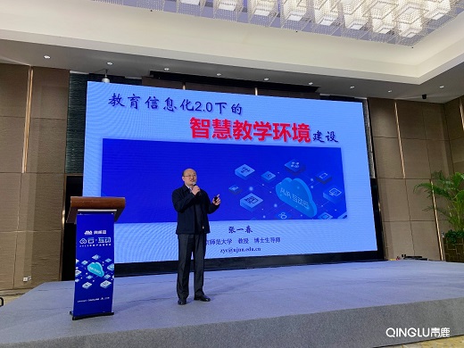 在南京站現場,南京師范大學張一春教授以《教育信息化2.0下的智慧教學環境建設》為主題發表演講,針對教育信息化的需求,提出了智慧教學環境建設思路及對策,并與現場來賓進行交流探討。