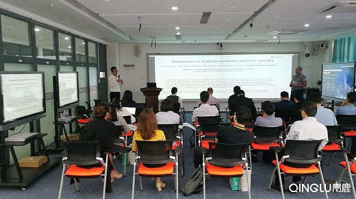 Collyer博士以“高校如何應對技術變革及案例分享”為題,介紹了昆士蘭大學鼓勵教師使用信息化教學管理平臺輔助教學,并通過一系列方式提升教師運用網上教學系統的熟練度,以便可以運用技術服務更好地支持教學工作。