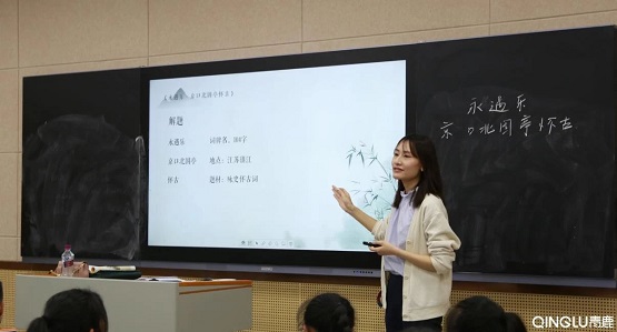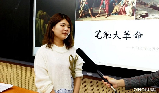 現在的學生,其實思維是很窄的,尤其是文科的同學更容易有這樣一個問題。所以學校有這樣一個條件,能把學生的興趣激發起來還是很好的。如果在常規的教室里上這樣一節學科融合課,我要做資料準備,要組織學生討論,至少需要用到2-3個課時。但是在(青鹿智慧課堂)這樣一個環境中一節課就可以展示完,而且效果會更好。