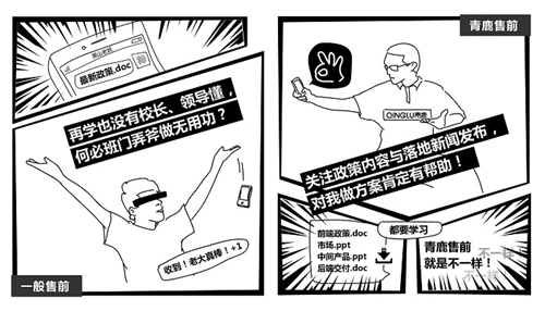 很多人說售前學會FAB(功能、優勢、價值)大法就可以了,但是現實中往往F還沒講完,用戶就煩了。對此,某不愿透露姓名的青鹿資深售前這樣描述售前業務水平:“菜鳥售前強調參數、普通售前堆功能,優秀的售前......就像我們青鹿售前這樣!”一般售前和青鹿售前究竟有什么不一樣呢?