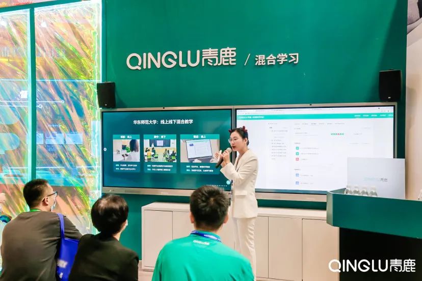 展會現場,青鹿帶來了課堂創新教學、混合學習、泛在學習、教學督導以及教學數據治理5大賦能場景的展示與講解,讓現場來賓近距離了解感受教育與科技的創新結合。