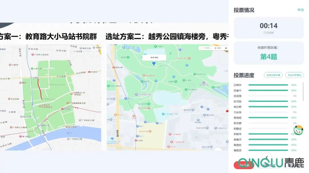 在成果分享與交流的過程中,同學們還通過青鹿智慧紙筆的投票功能,給各小組提出的展廳設計方案、博物館選址方案進行投票,增強學生間的互動交流,營造出愉悅輕松的課堂氛圍。