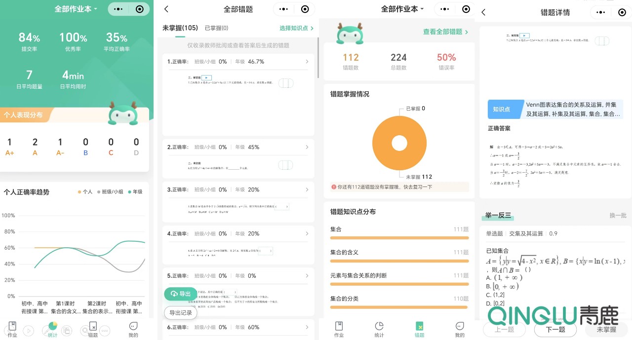 青鹿智慧作業(yè)能夠?qū)崿F(xiàn)錯(cuò)題自動(dòng)歸集,有助于為學(xué)生提供精準(zhǔn)的補(bǔ)償性訓(xùn)練,有效避免機(jī)械、重復(fù)性作業(yè)負(fù)擔(dān)。