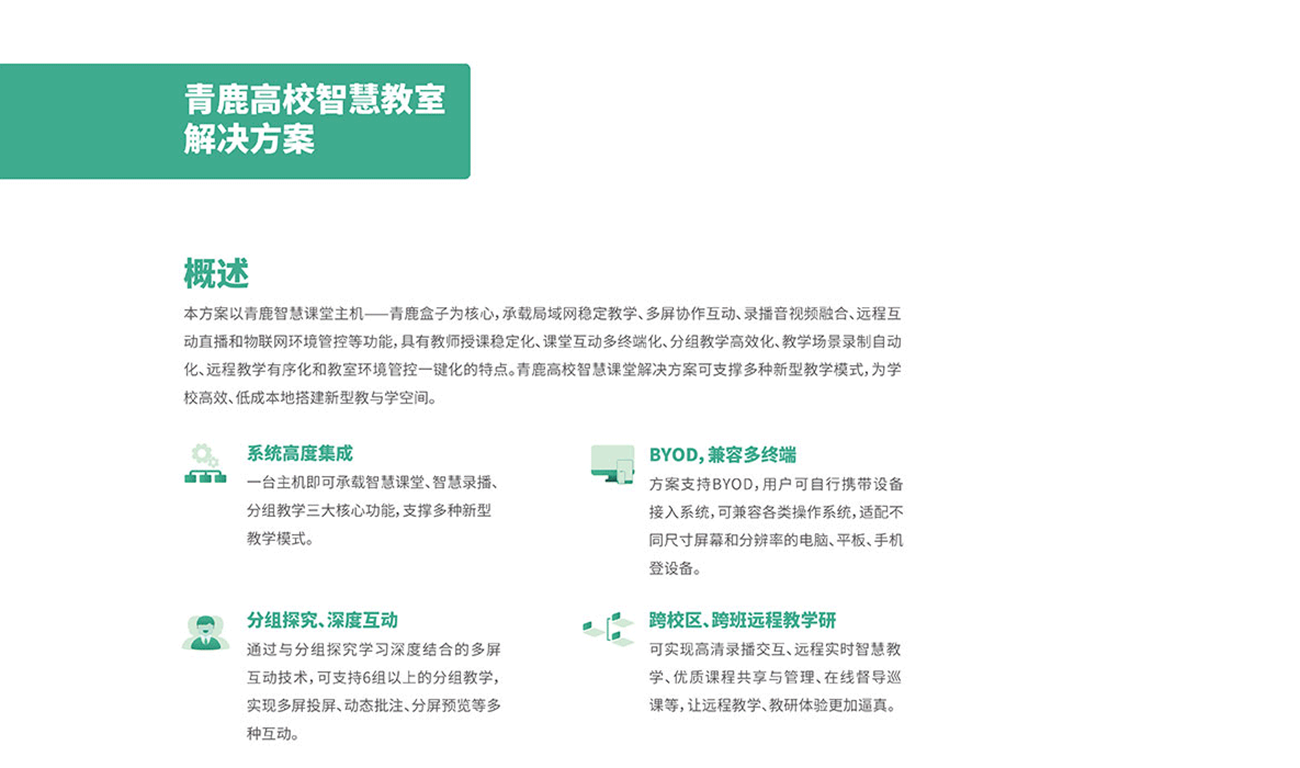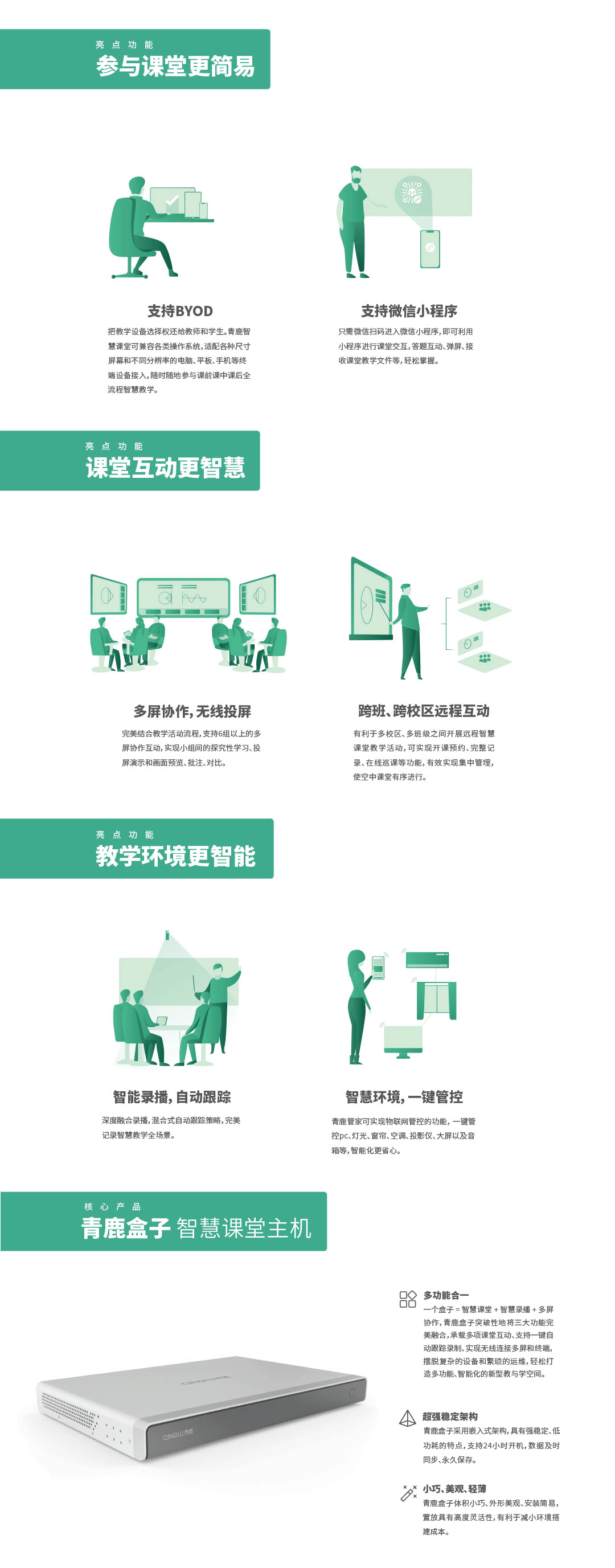 智慧教育信息化整體解決方案提供商,我們提供集智慧紙筆課堂、智慧錄播為一體的智慧教學環境,提供一套可廣泛應用于K12學校信息化整體建設的開放式底層平臺,為學校的教學和管理質量提升提供支撐,賦能教育的數字化轉型。